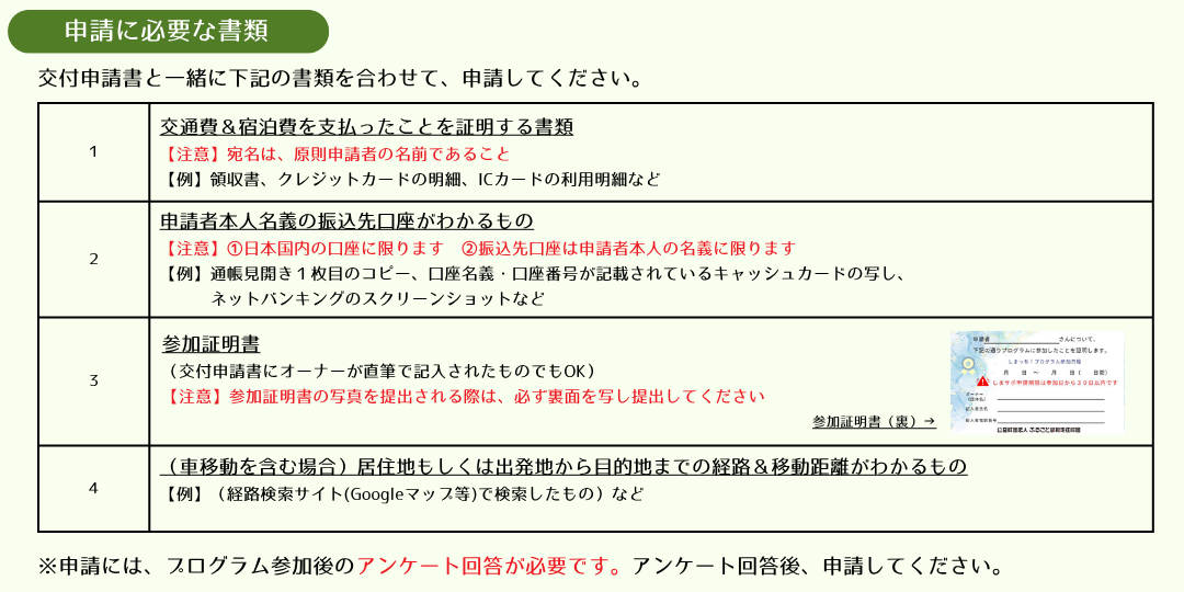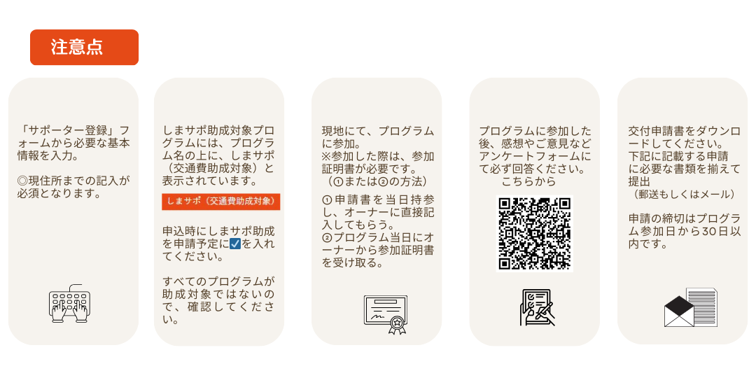 しまサポ助成金の申請締切はプログラム参加日より30日以内です。