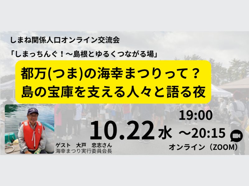 今回は、ゲストに島根県隠岐の島町・都万(つま)地区の「海幸まつり実行委員会 会長 大戸 忠志さん」と「隠岐の島町役場都万支所のみなさん」にご登壇いただきます!