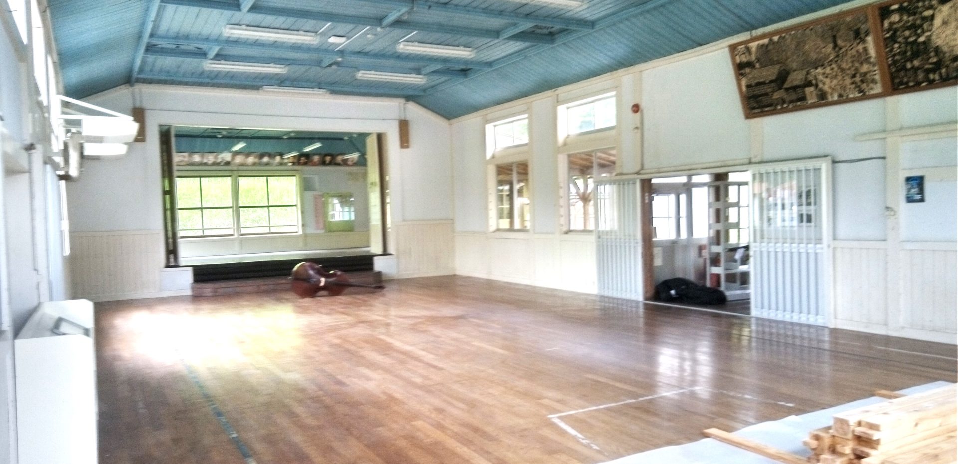 昨年復活を遂げた旧大谷小学校の講堂。今年の春以降、この場所を拠点とする新しいコンサートやサロンを企画してきました。