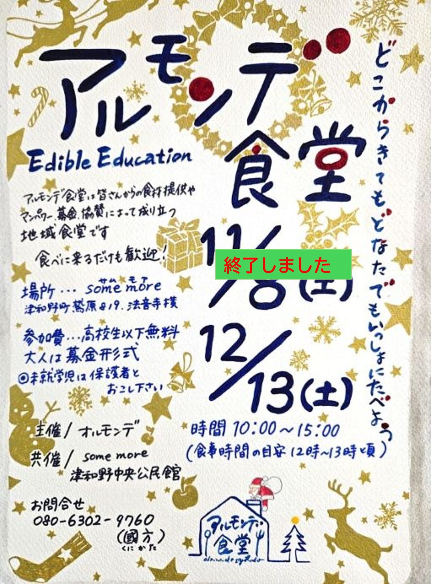 【12/13開催】今年最後の「皆で創る アルモンデ食堂」サポーター募集!