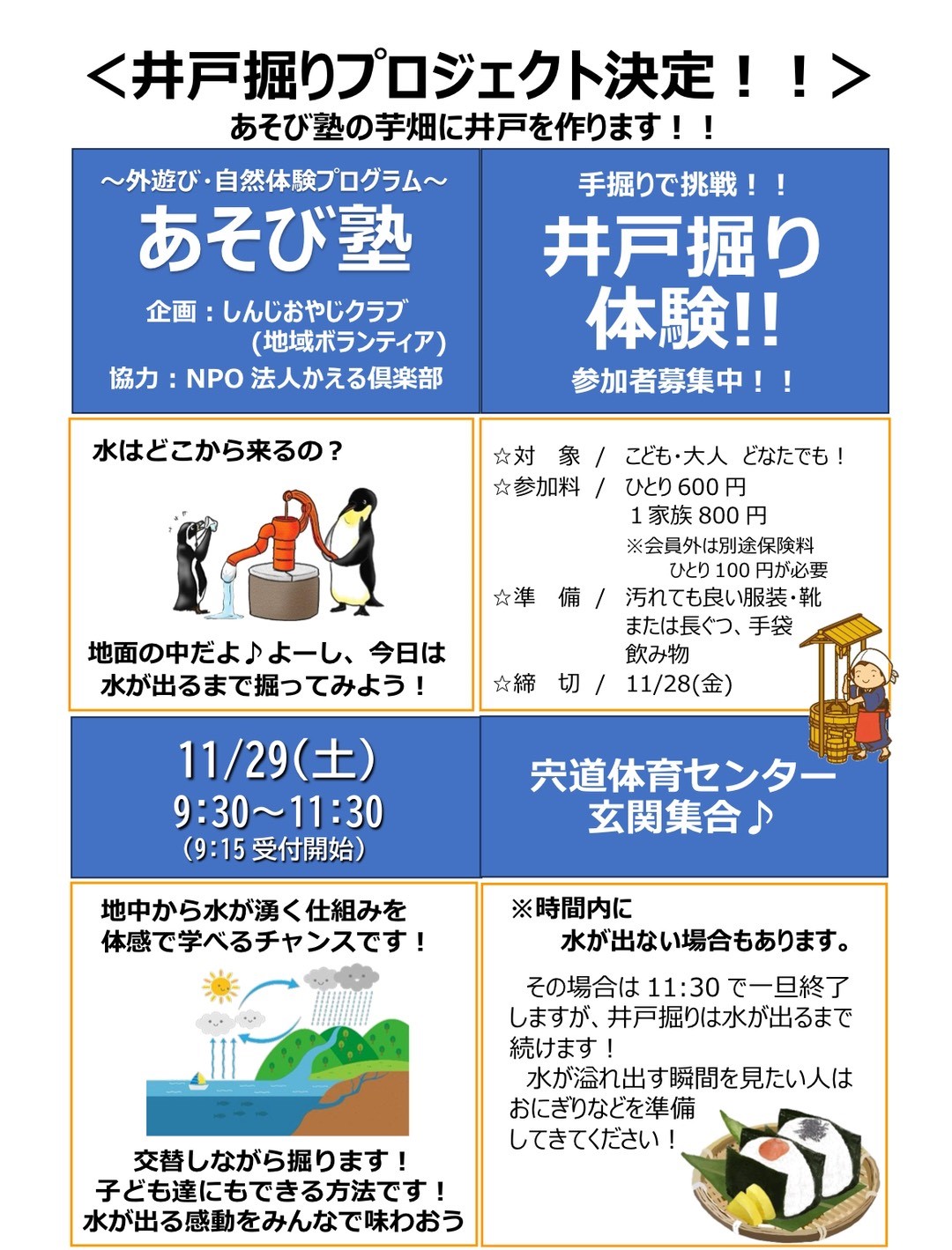 【11/29開催】かえる倶楽部手堀りの井戸掘りの運営サポーター募集!