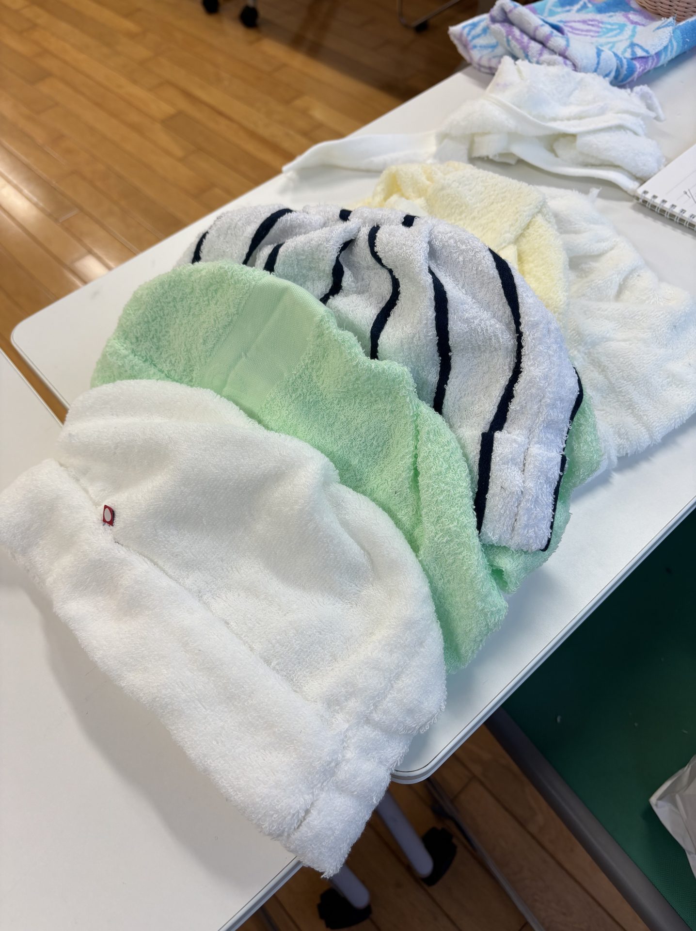フリースクールの子どもたちと一緒にタオル帽子を作る機会がありましたが、4回で1枚を完成させることができました。