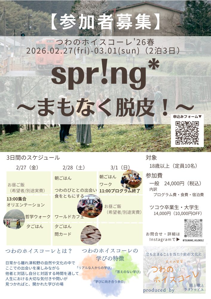 - 「つわのホイスコーレ'26春【spr!ng*〜まもなく脱皮!〜】」サポーター募集!