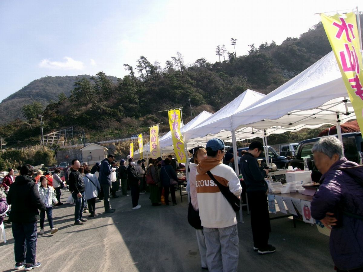 油井すいせん祭りは、2009年2月より油井の池遊園地駐車場にて地元特産品や、地区の人たちがつくる飲食の販売から始まりました。 2022年より会場を油井漁港の作業場に移動し、他地域からも出店を募ることで、来場者数も増加し、拡大していきました。