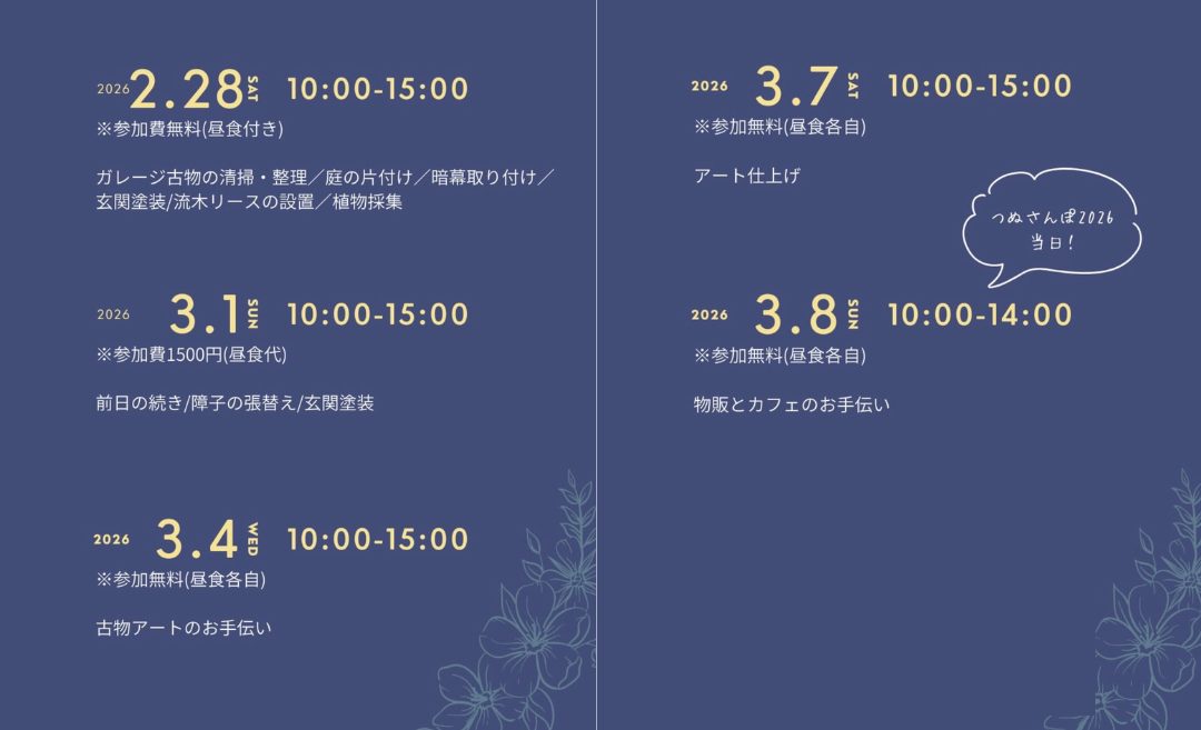3月 8日(日)10時~14時 参加費無料・昼食各自