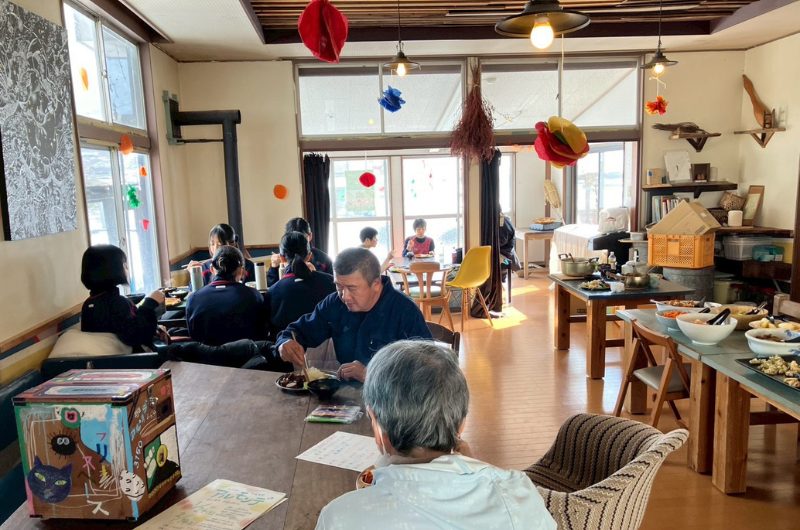 この日もアルモンデの食卓は賑やかで地域の若者も初参戦!こどもたちの声も聞こえてきます。