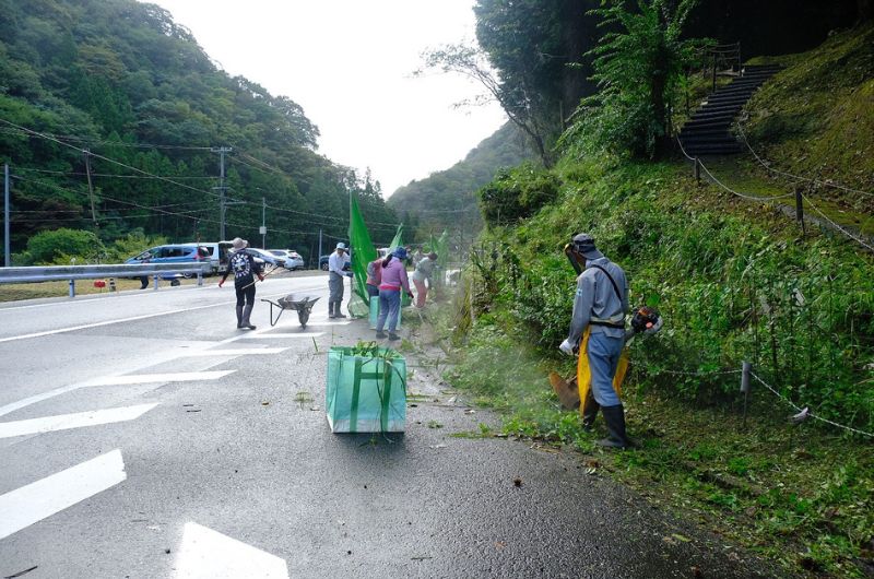 作業当日は、朝方まで降った雨の影響で、足元の悪い中の作業となりました。その中でも、参加者みなさんのご協力で1時間ほどで終えることが出来ました。