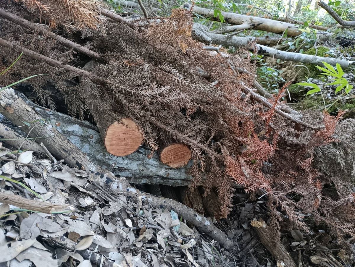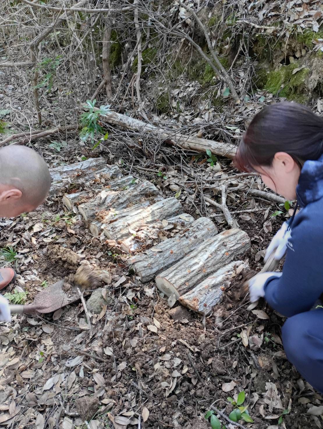 当初準備していた種コマの数に対して原木が不足しており、急きょ当日に原木を切り出し、打ち込み作業を実施。