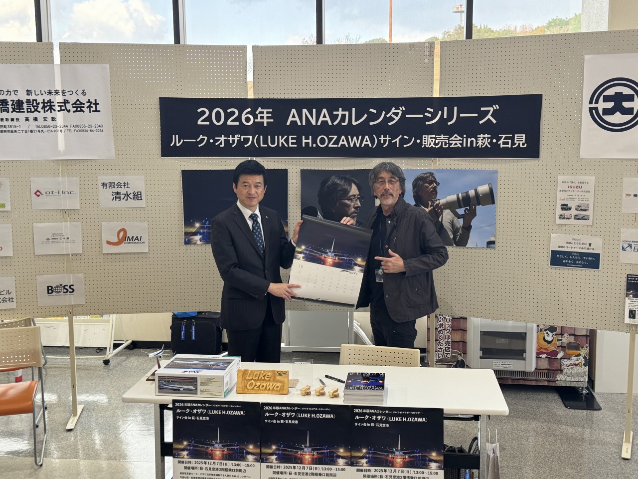 開催を通じて、ルーク・オザワ氏の存在が、萩・石見空港の魅力を再発見する大きな契機となりました。連続採用されたカレンダーの価値を来場者と共有でき、空港利用促進や観光誘客、地域ブランド向上にもつながる有意義な機会となりました。