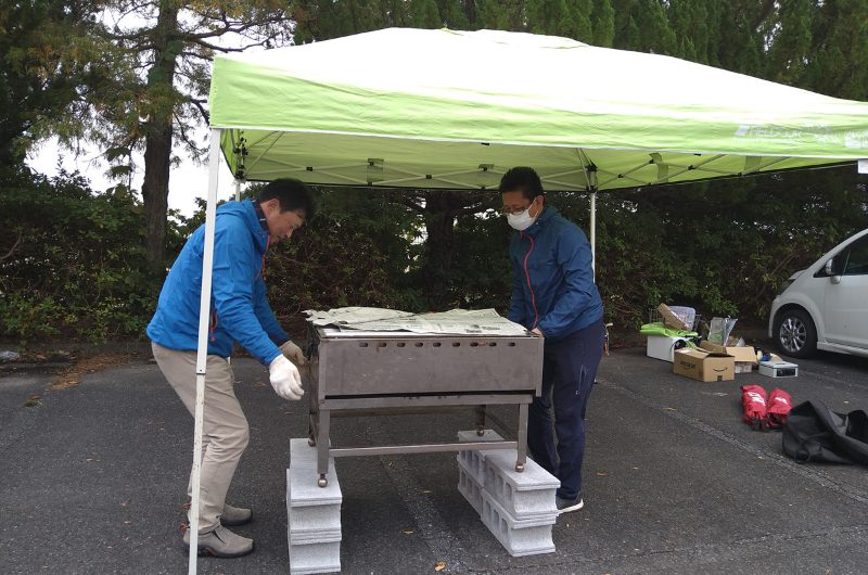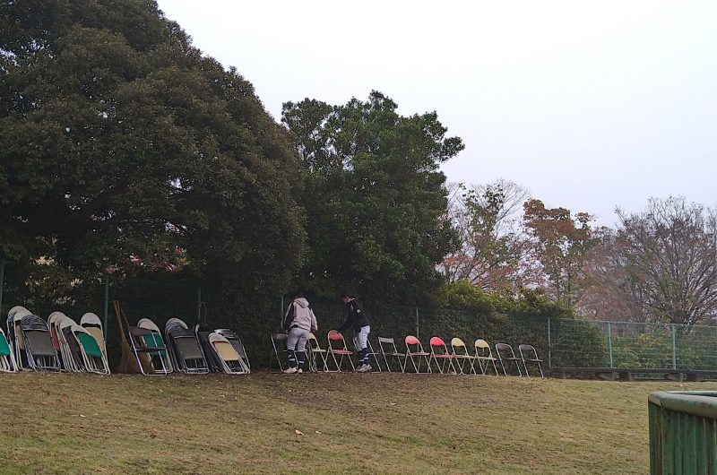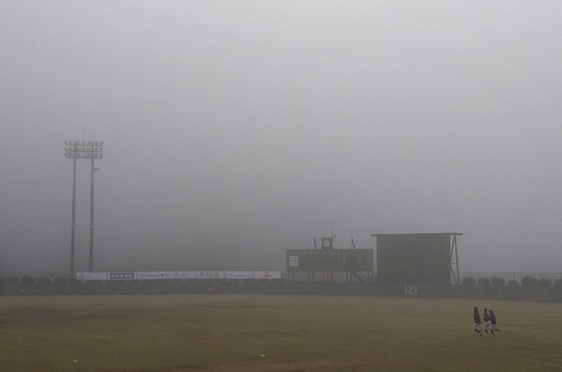試合当日は周囲が山に囲まれた町のため深い霧の中での作業に…。また球場運営に慣れておらずバタバタしてしまいましたが、サポーターの皆さんが臨機応変に対応してくださり助かりました。