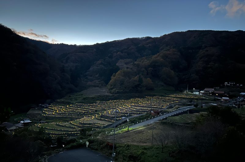 例年、冬の風物詩として、棚田のライトアップを実施。2800本ものソーラー充電式ライトによって彩られた棚田は、昼間とは打って変わって幻想的な雰囲気に。遠方からも観賞客が訪れる程の名物です。